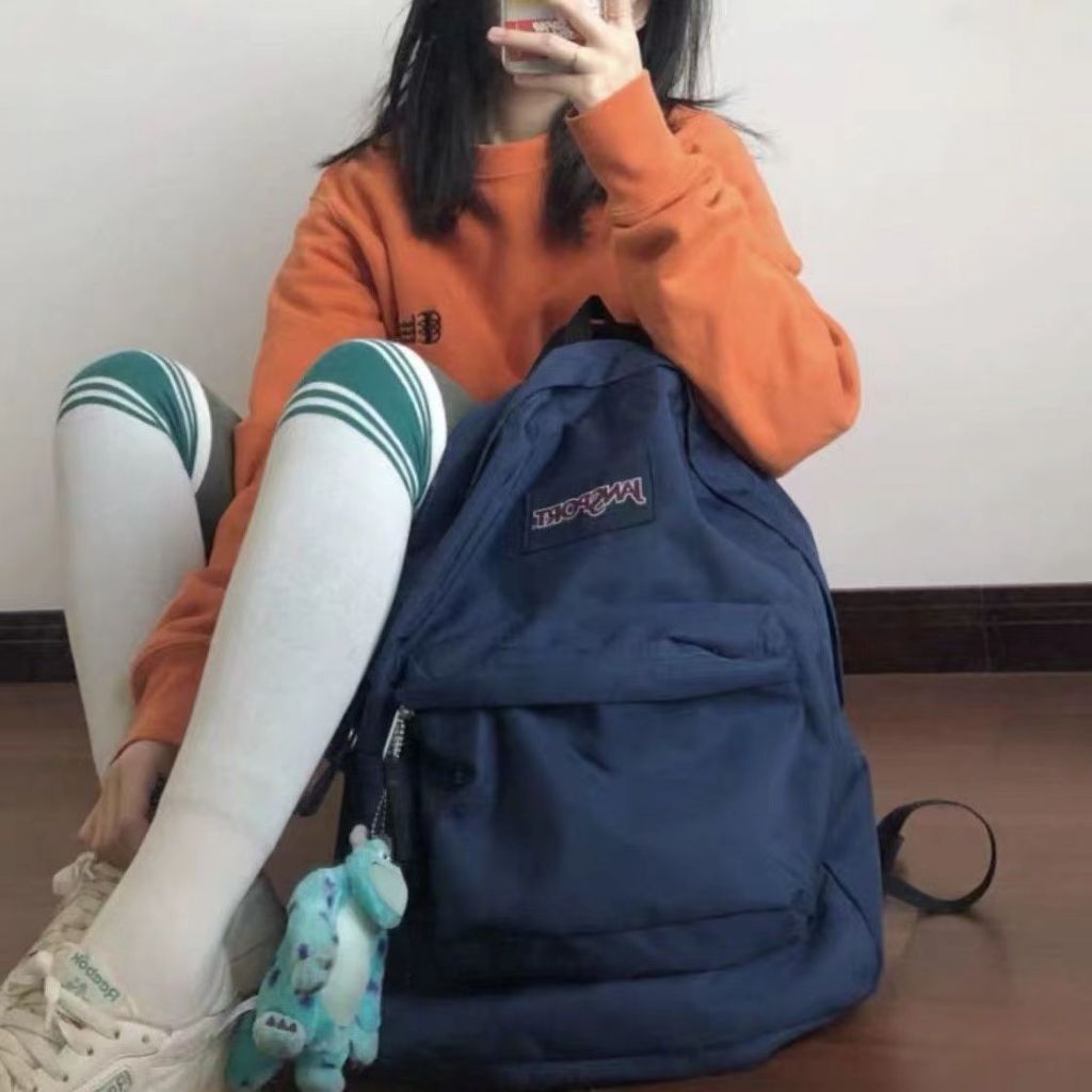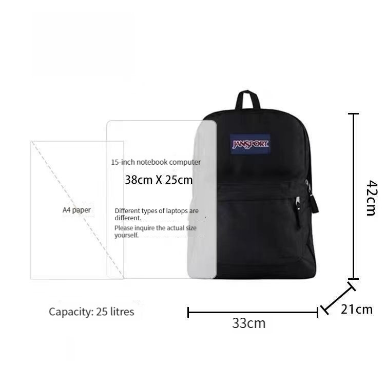 Colour:same as picture Material Quality:sturdy canvas material seems to be the authentic jansport bag very spacious and has a laptop sleeve, as well as a small inner pocket on the outside pocket. no pockets in the main compartment, and one water bottle slot straps are comfortable, zips are smooth as well