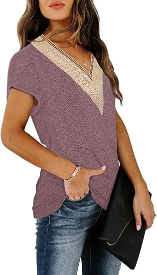 Features: Cap sleeve tops,Short sleeve shirts balck, Lace petal sleeve,V Neck,Solid Color, Cute printed,Striped, Tie dye,Boho Floral Print