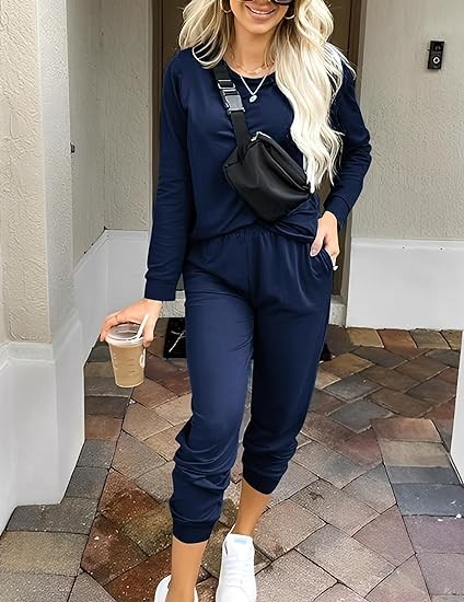 LONG SLEEVE PJ TOP: 2 pack pajama sets for women with pullover crew neck long sleeve shirt, loose-fitting tops, It's easy to pull on or take off.