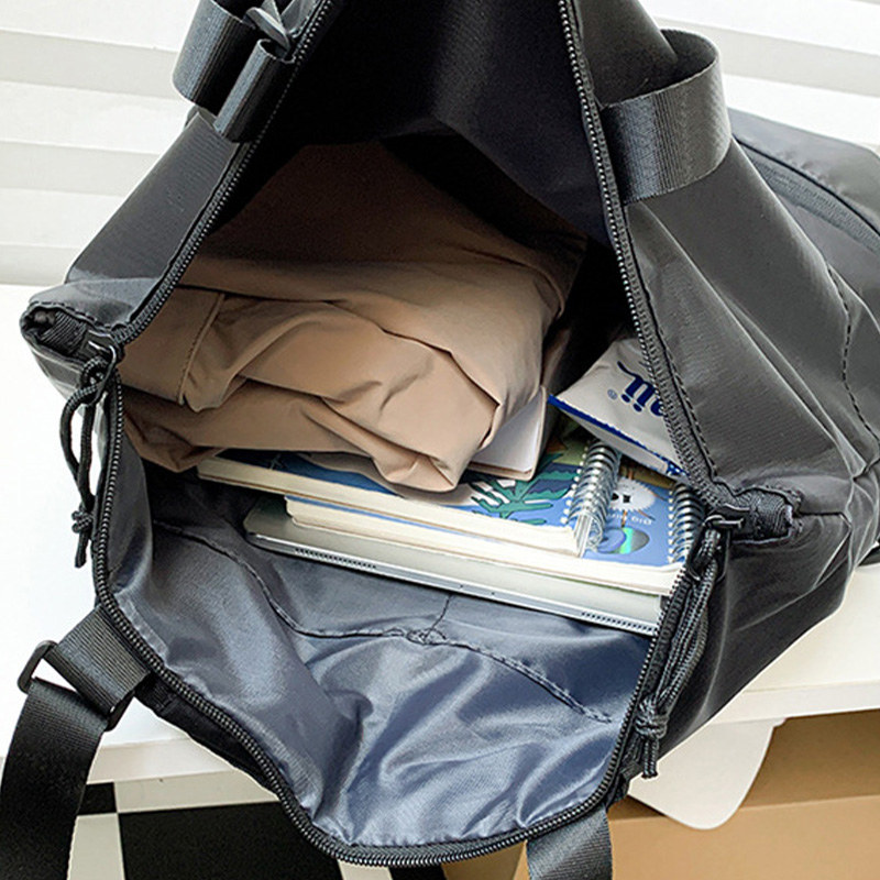 Material Quality:Lightweight Colour:Black ? Received item as advertise. Great quality with lightweight material and value for money. You can carry the bag as a backpack or put it on your shoulder. Love it and happy with my purchase. Thank you seller.