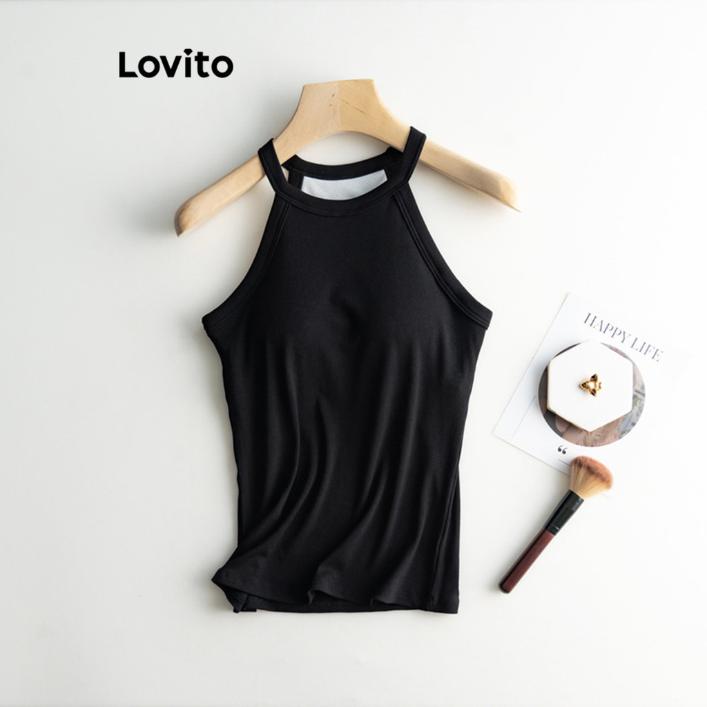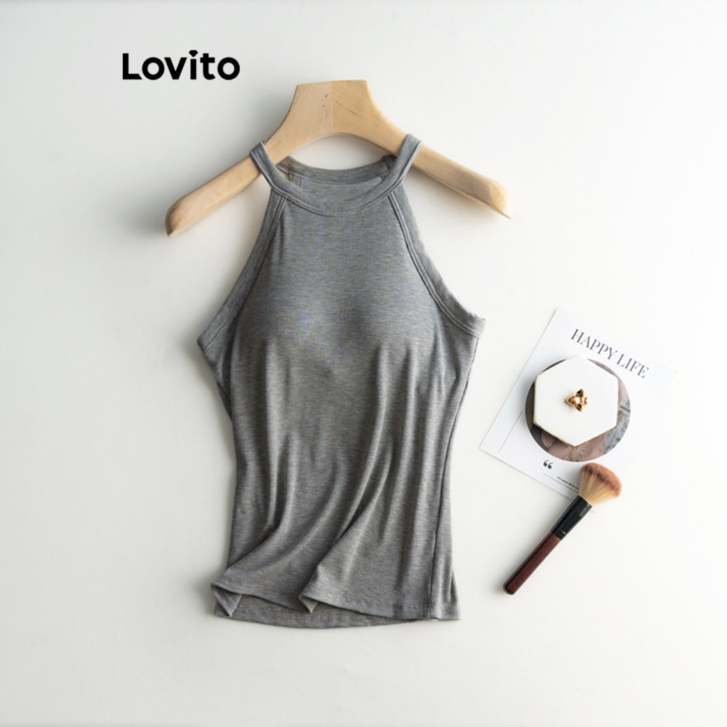 Lovito Casual Plain Chest Pad Tank Top for Women LNL36137 (Khaki/Apricot/Grey/White/Black)