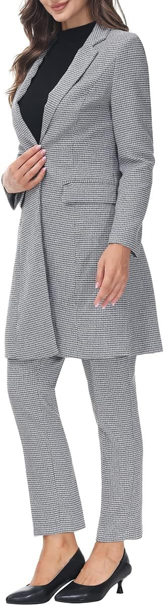 [Premium Fabric]: This women's long business blazer set is made of high quality polyester, viscose fiber and spandex, feel comfortable, abrasion resistant, wrinkle-resistant. Suitable for wear in spring, autumn and winter.