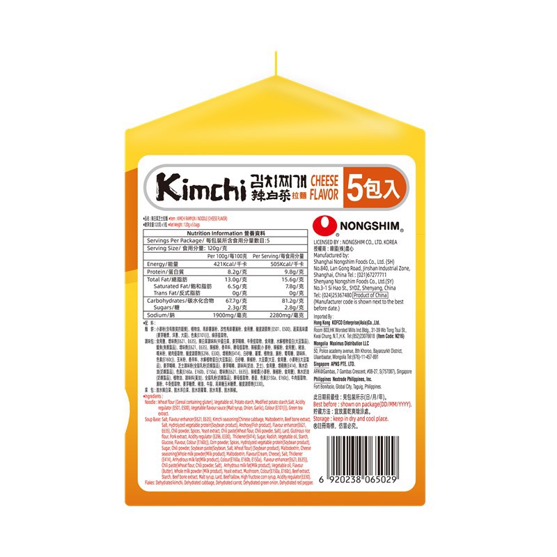 Nongshim Korean Kimchi Cheese Ramyun - 5s Bag x 120g [Korean]