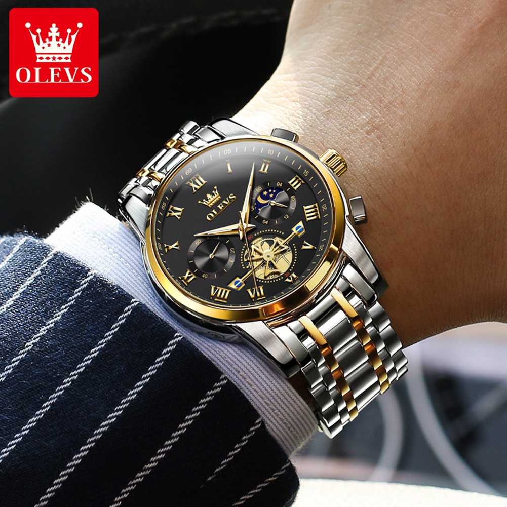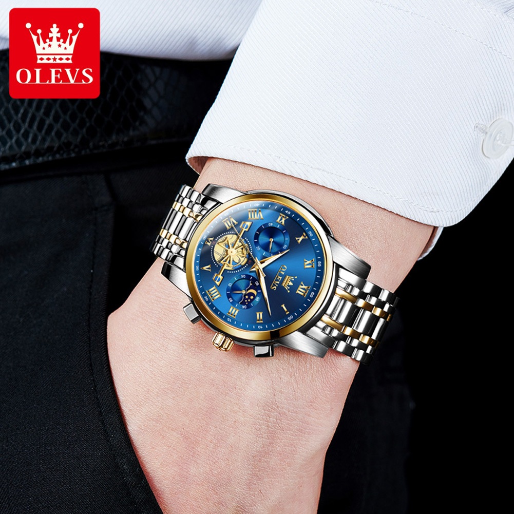 OLEVS Watch For Men Waterproof Original Stainless Steel Quartz Luxury Multifunction Wristwatch 2859