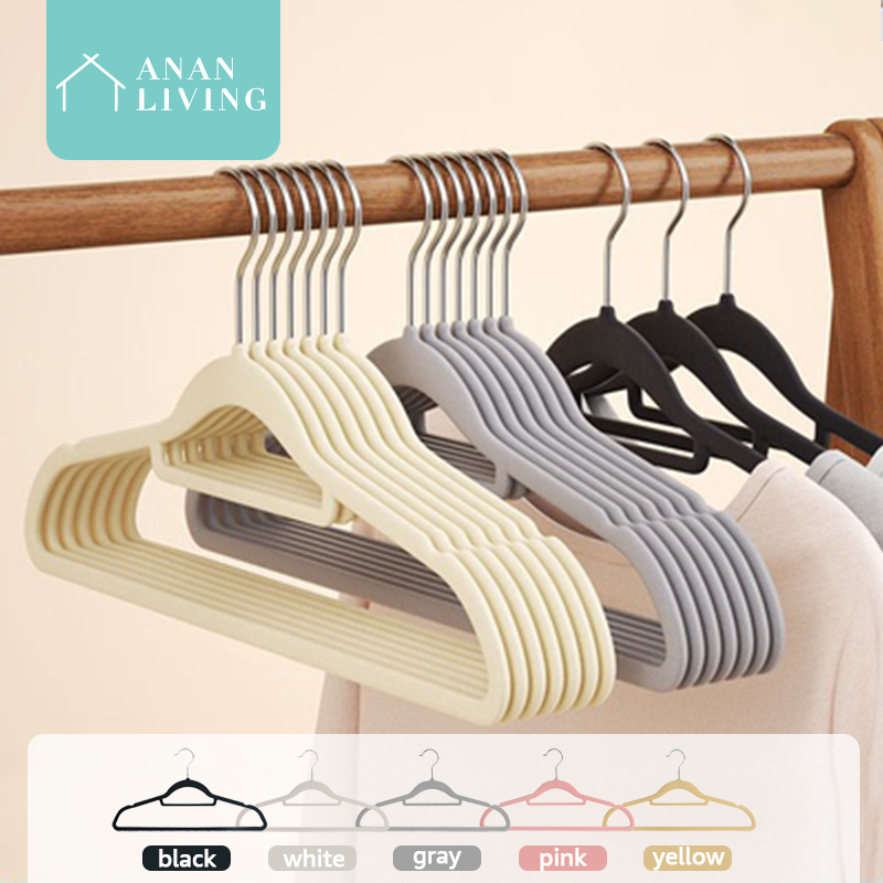 【SG Seller】Anan 10/50pcs Clothes Hanger Velvet Hanger Non-Slip Laundry Wardrobe Organizer White/Pink/Black