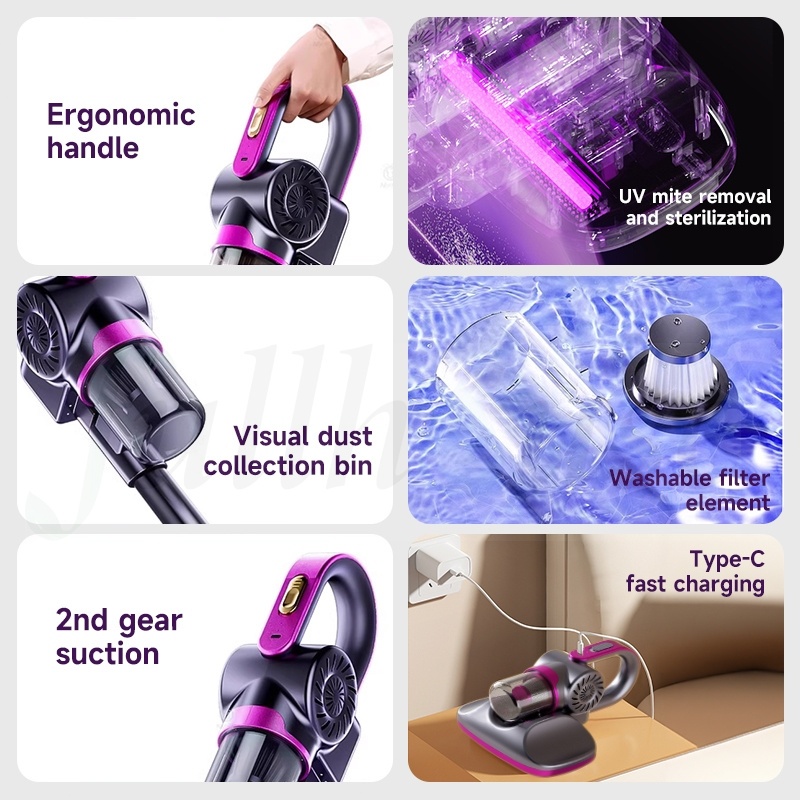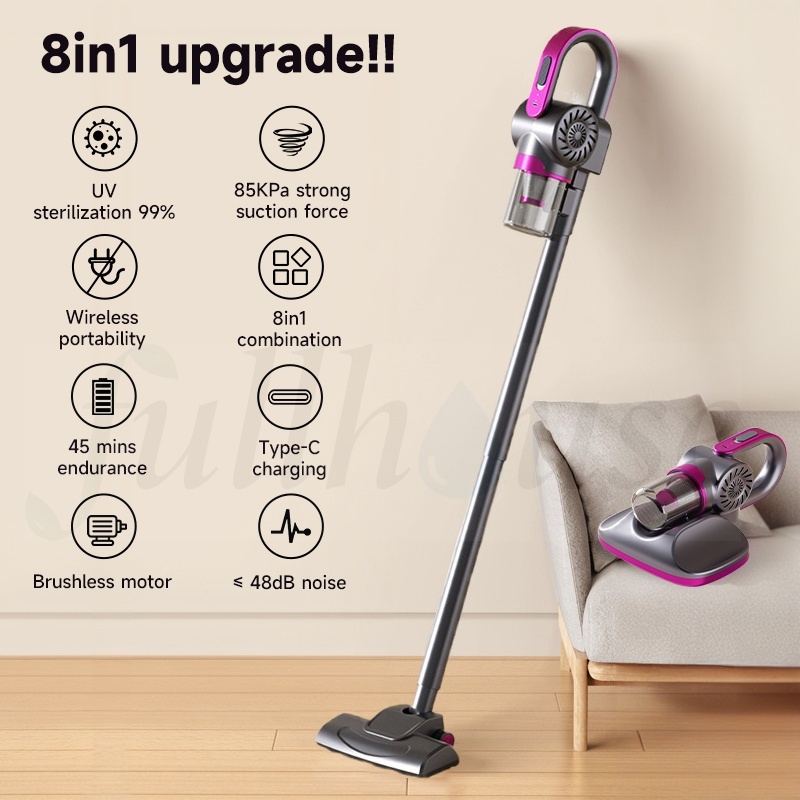SG Stock Cordless Dust Mite Vacuum Cleaner 8 in1 UV-C Ultraviolet Irradiation Bacteria Remover Bed Sofa Beating Function