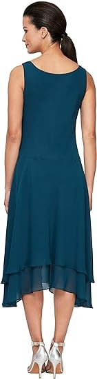 Sleeveless lined chiffon dress with beaded embellished scoop neckline and high-low tiered hemline